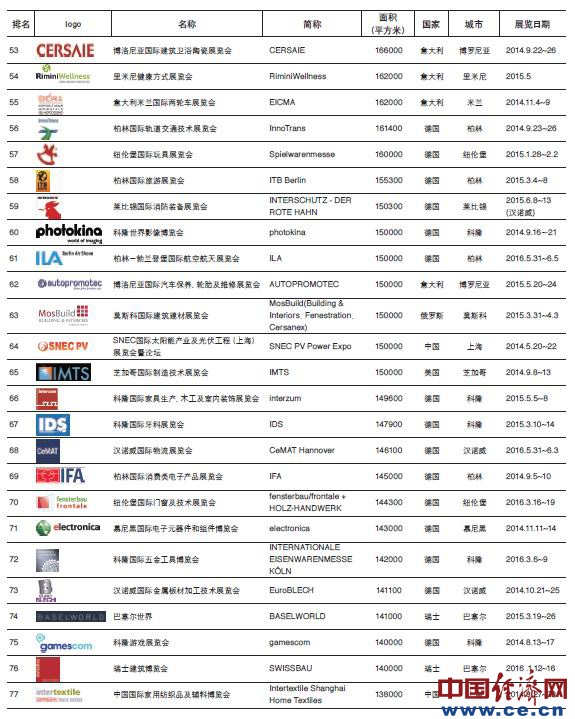 4. 排名采用20131231日前最近一屆展覽的數(shù)據(jù)。