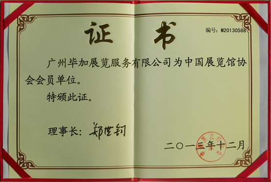 恭喜畢加展覽成為中國展覽館協會會員單位