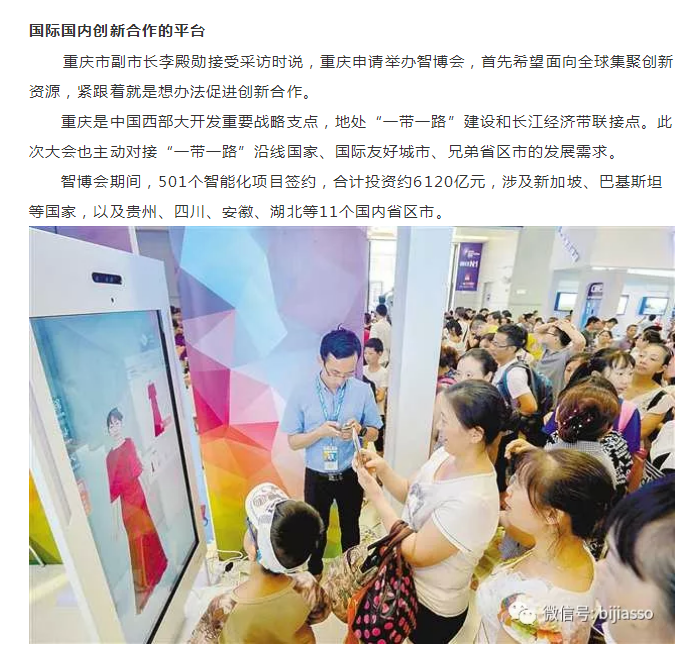 在重慶舉行的首屆中國(guó)國(guó)際智能產(chǎn)業(yè)博覽會(huì)已于昨日結(jié)束展覽,已吸引30多個(gè)國(guó)家和地區(qū)52個(gè)代表團(tuán)的200多位重要外賓參會(huì),簽約項(xiàng)目投資額約6120億元人民幣。