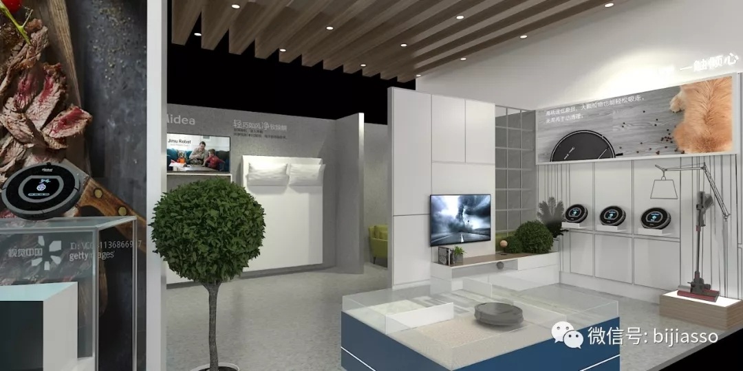 位于展廳較后面設(shè)計師為了參觀者能有展示感,從而設(shè)計了產(chǎn)品新品展示的體驗方式。設(shè)計師豐富地利用每一個空間,把美的產(chǎn)品以展示墻展示,星空圖做背景,形成以美的為主的星空藍圖。美的就是生活,生活有它更美的。